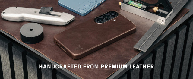 This case is handcrafted from premium cowhide leather. The top-grain leather used in constructing this case is sourced from tanneries in the United States and undergoes minimal treatment to preserve the natural properties and appearance of the leather.