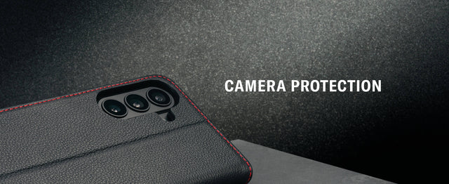 The S26+ wallet case features a unique raised edge around the perimeter of the camera, to maximise protection against damage or scratches to the camera lens.